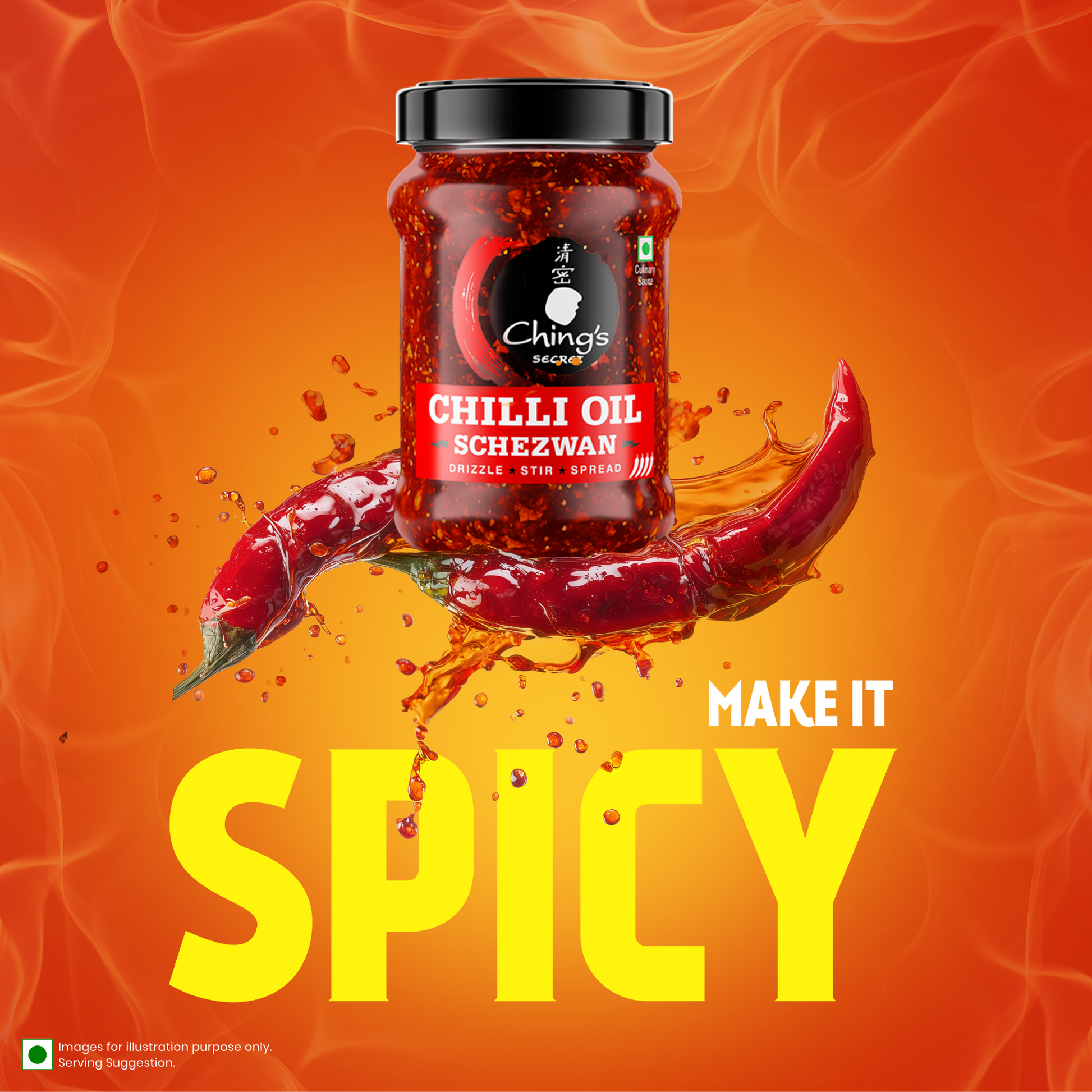 LOOKS FIERY, TASTES HOT! Get ready to turn up the heat with the new Ching’s Chilli Oil Schezwan - a bold, flavour-packed companion to any dish. Bursting with Ching’s signature Schezwan spiciness, it brings a sizzling punch of flavour to every bite. The perfect blend of premium ingredients - with less oil and more punch.