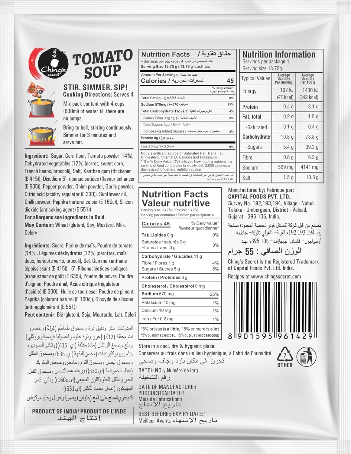 - Ching's Tomato Soup has Shelf Life of 12 Months from the date of Manufacturing.