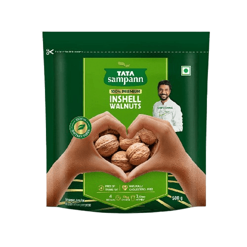 - Tata Sampann Inshell Walnuts 500g has Shelf Life of 9 Months from the date of Manufacturing