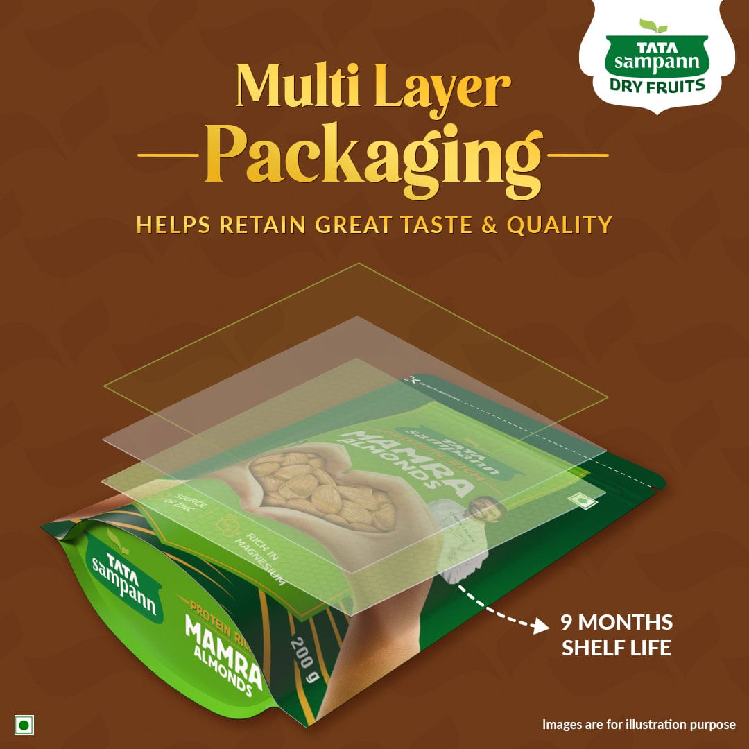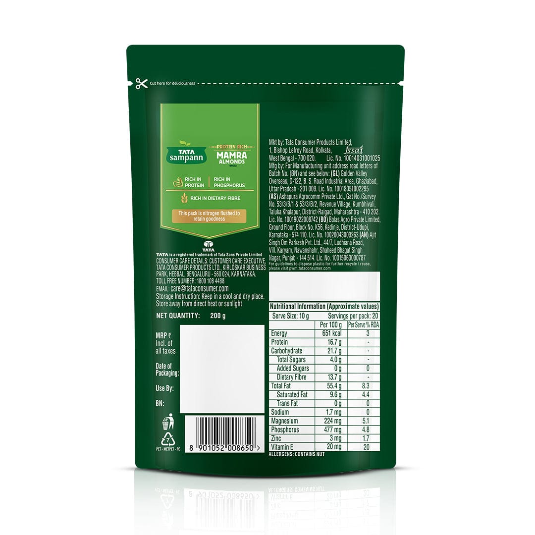 - Tata Sampann Mamra Almonds, 200gm has Shelf Life of 9 Months from the date of Manufacturing