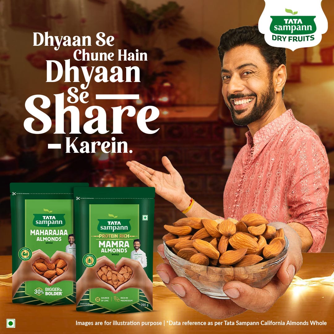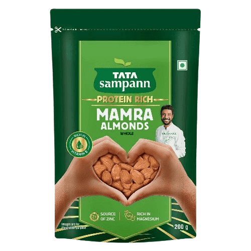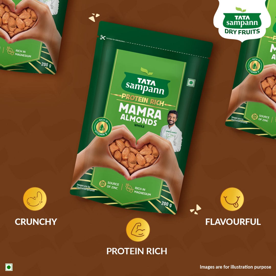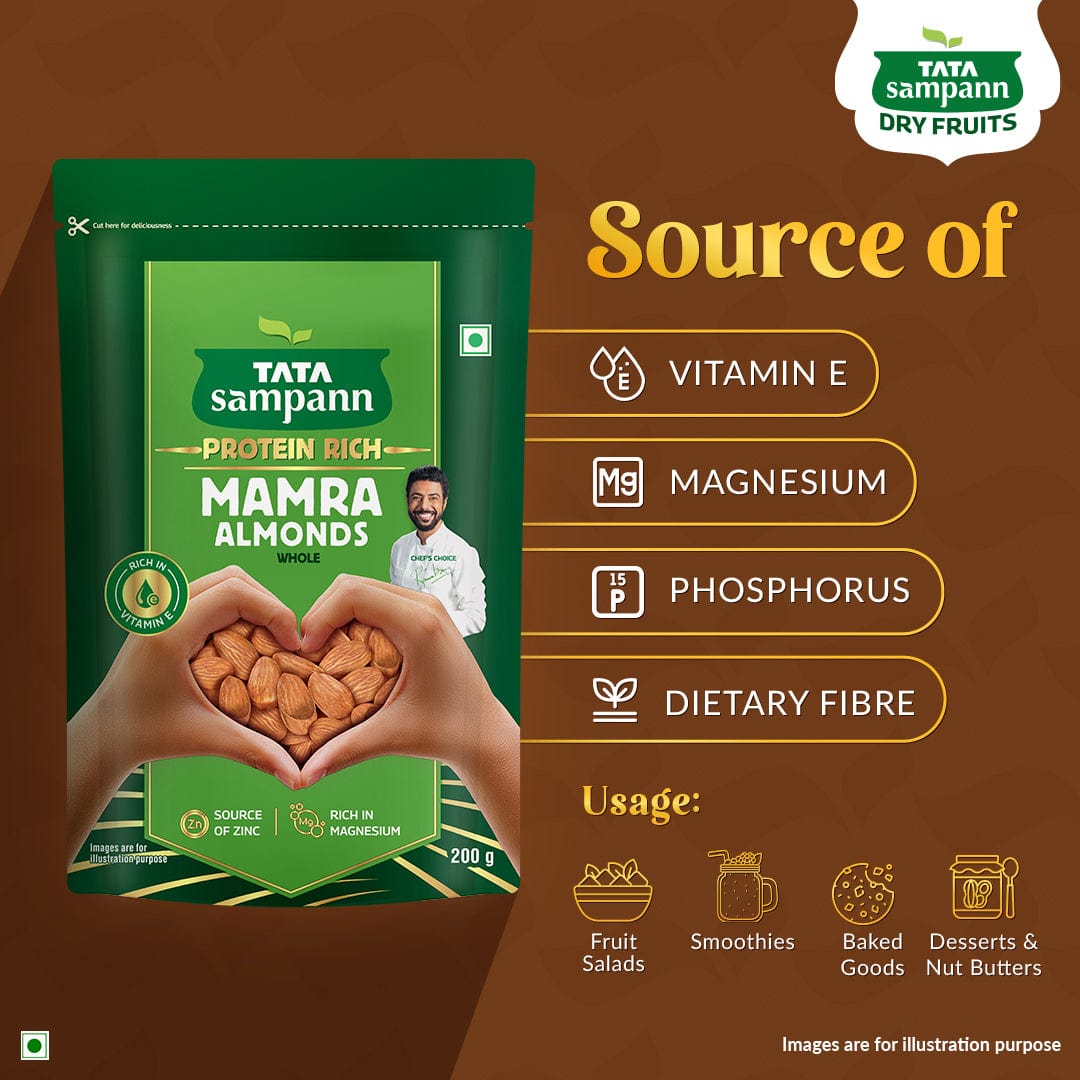 Tata Sampann Mamra Almonds (Whole)/Badam (Whole), Rich in Vitamin E, Protein, Magnesium, and Source of Zinc, Phosphorus, Dietary Fibre, Chef Ranveer Brar’s Choice, 200g