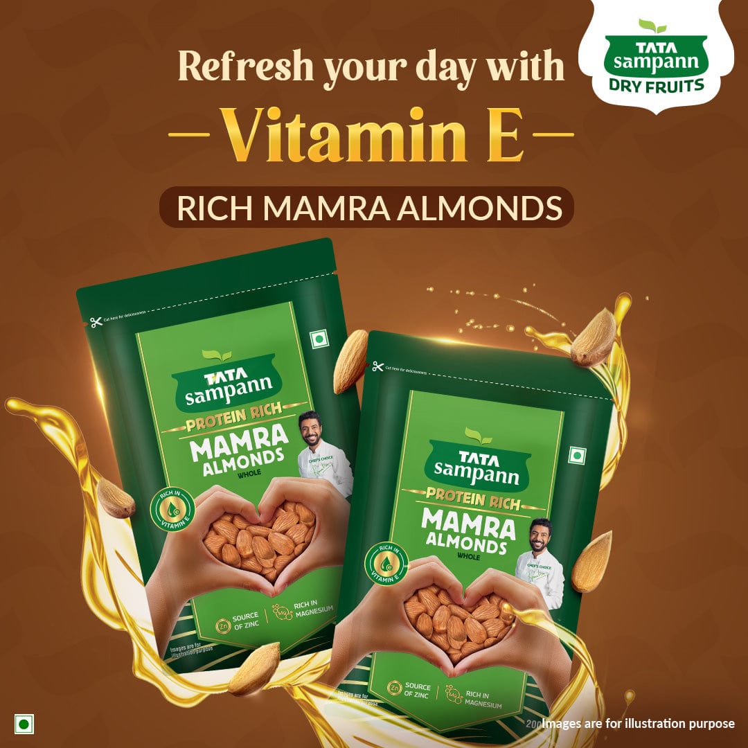 - RICH IN VITAMIN E: Tata Sampann Mamra Almonds (Whole) (badam) are a rich source of vitamin E thereby aiding in overall wellbeing