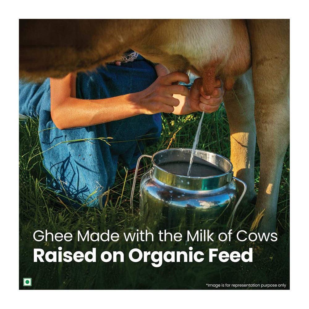 - ORGANIC GHEE: Our ghee is made from the milk of cows raised on an organic farm, fed exclusively with certified organic feed and fodder, free from synthetic additives and chemicals