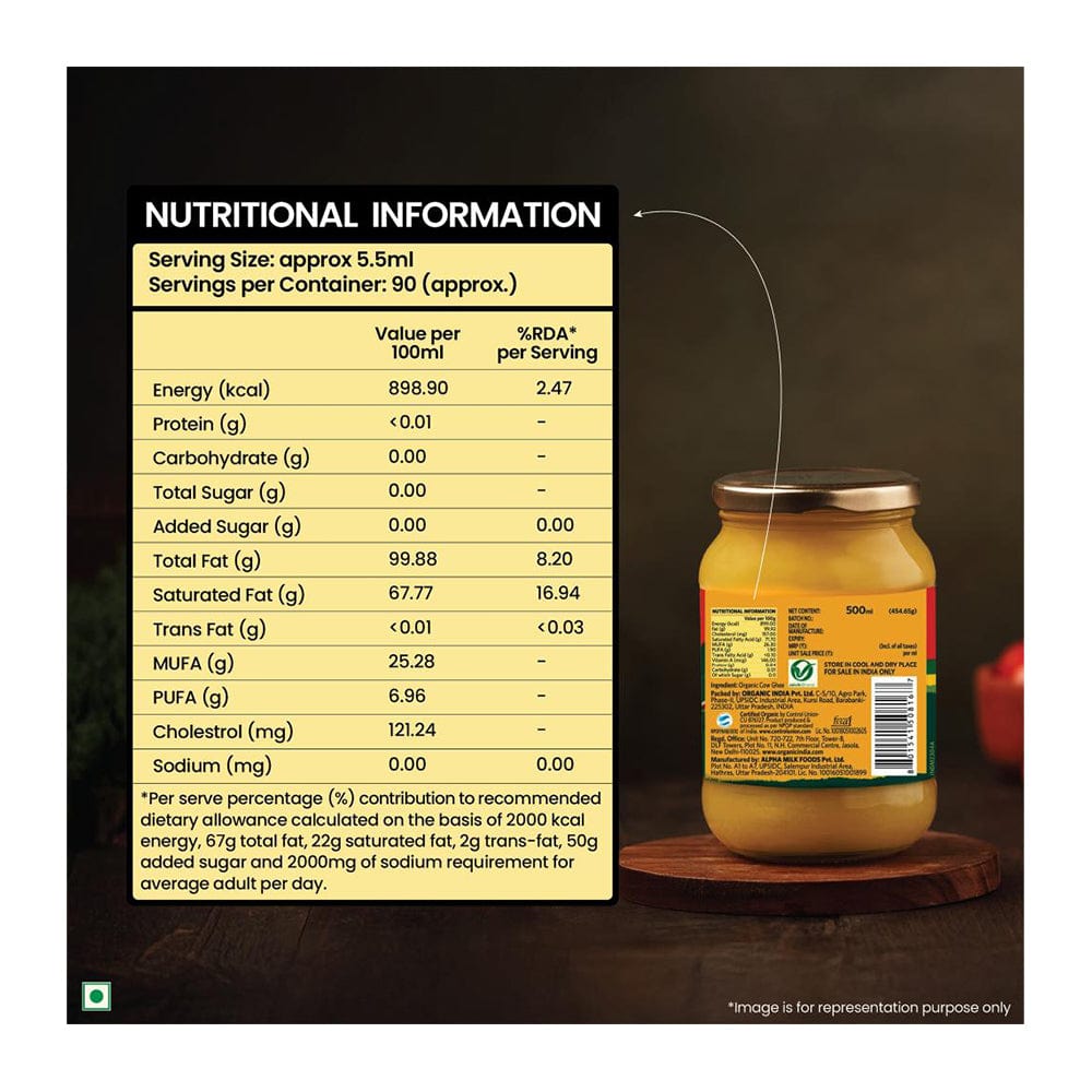 - SPECIAL INSTRUCTION: Our ghee is packed in glass bottles with metal lids. Please handle the bottle carefully and ensure the lid is tightly closed after each use