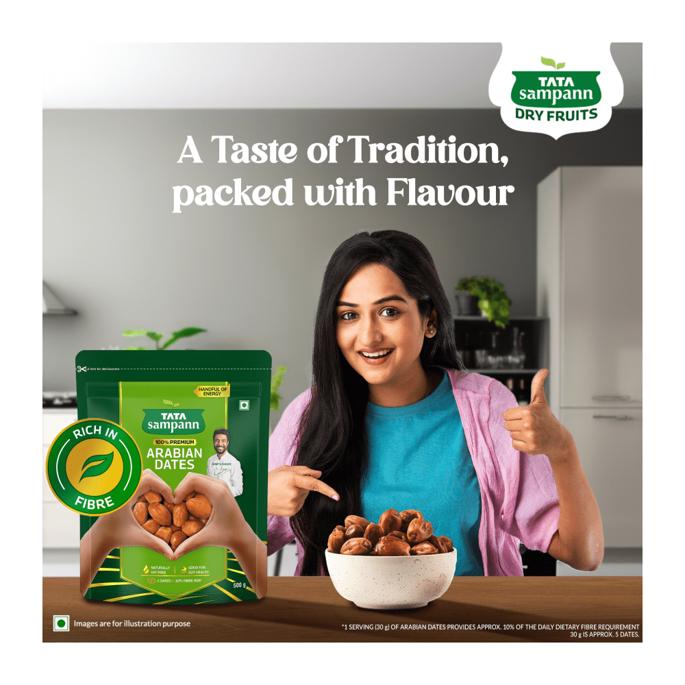 - 100% PREMIUM ARABIAN DATES: Savour the exquisite taste and benefits of Premium Arabian Dates from Tata Sampann